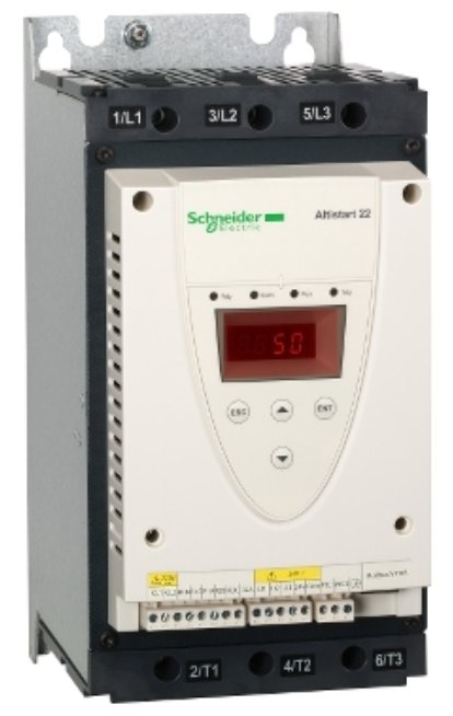 пристрій плавного пуску Altistart 22 може живити 3-фазні асинхронні двигуни при підключенні у місці розриву мережевих лінійних провідників або підключенні до схеми "трикутника" двигуна. Номінальний струм 88 А та 230–440 В, потужність до 45 кВт