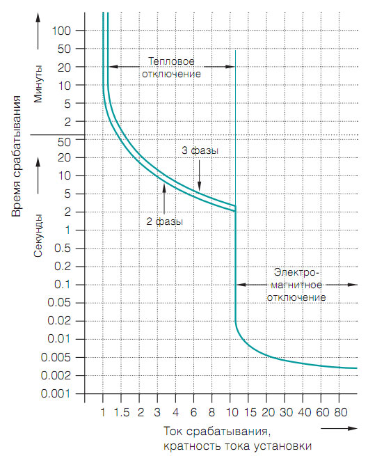 Характеристика автоматических выключателей серии MS приведена на графике Токо - временной зависимости срабатывания расцепителя: ms116 график