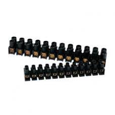 Многополюсная клеммная колодка для подключения 12 проводников сечением 4 мм2. Выполнена из полиамида черного цвета не поддерживающего горения, самозатухающего. Номинальный ток 32 А. Для напряжения до 500 В.