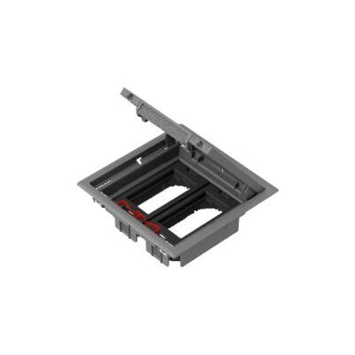 Люк напольный для установки четырех розеток. Выполнен из поликарбоната, АБС-пластика и стали высочайшего качества. Устанавливается во все виды полов. Степень пылевлагозащиты IP20. Гарантийный срок от производителя 18 месяцев. Габаритный размер 199х199 мм.