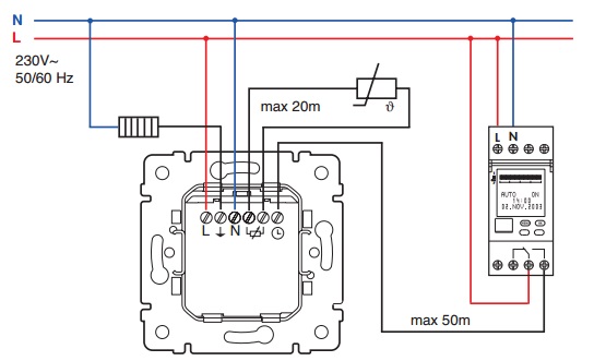 Терморегулятор с лицевой панелью цвета слоновая кость позволяет произвести регулировку температуры нагрева. Номинальный ток 16 А, напряжение 230 В. Переход с комфортного на слабый режим с помощью вспомогательного входа 230 В~. Поставляется с датчиком температуры пола длиной 20 м. Тип подключения - винтовые контакты.Для полной комплектации необходимо купить декоративную рамку. Долгий срок эксплуатации за счет высококачественного поликарбоната из которого выполнены корпус и панель стойкого к механическим повреждениям, возгоранию и негативному воздействию УФ-излучений. Суппорт, захваты, винты - оцинкованная сталь. Установка в монтажную коробку.