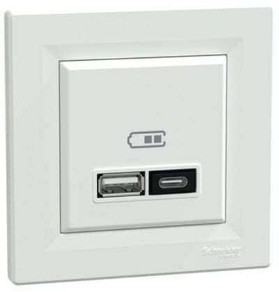 Двойное зарядное устройство для USB тип A+C 21 Вт в комплекте Белый Asfora Schneider Electric EPH2700521 - цена грн/ед с НДС