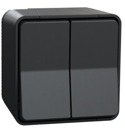 Двухклавишній переключатель IP55 10А 250 V AC сх.6+6 наружный монтаж Черный Mureva Styl Schneider Electric MUR35022 - цена грн/ед с НДС