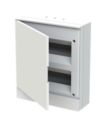 Бытовой компактный щиток ABB серии Basic E на 16 модулей. Для применения внутри помещений. Применяется для монтажа распределительного и защитного оборудования на DIN-рейку.