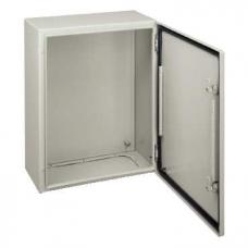 Настенный стальной шкаф с одной дверью. Боковые панели выгнуты из цельного листа. Задняя панель крепится к боковым панелям с использованием специального профиля,обеспечивающего пыле- и влагонепроницаемость. Наружная и внутренняя поверхности шкафа покрыты текстурированной эпоксидно-полиэфирной эмалью серого цвета RAL 7035. Благодаря своей прочности металлические шкафы идеально подходят для эксплуатации в помещениях, где они могут подвергаться внешним механическим воздействиям. Наружная установка: в соответствии со стандартом МЭК 62208 касательно типовых испытаний, оговоренных в §9.12 (стойкость к ультрафиолетовому излучению) и в §9.13 (стойкость к коррозии). IP66 для однодверных шкафов согласно МЭК 60529. 4 отверстия для крепления непосредственно к стене. В стандартном исполнении отверстия для настенного крепления закрыты пластиковыми заглушками, обеспечивающими необходимую степень защиты. Настенный монтаж также реализуется с помощью крепящихся снаружи кронштейнов (заказываются отдельно). Прямой ввод кабелей. Встроенная плата кабельного ввода, установленная заподлицо с задней панелью шкафа (без уплотнения, для облегчения проделывания отверстий). Платы кабельного ввода из изоляционного материала с выбивными отверстиями (предлагаются в качестве дополнительной принадлежности). 4 приваренных ступенчатых болта 10 мм облегчают оснащение шкафа оборудованием. Моноблочная конструкция со штампованной (не сварной) металлической дверью. Замок под ключ с 2 бородками 3 мм. Дверное уплотнение из вспененного полиуретана гарантирует пыле- и влагонепроницаемость на протяжении многих лет. Легко перенавешиваемая дверь, устанавливаемая на двух или трёх потайных петлях (угол открывания 120°). Сплошная дверь усилена приваренными дверными рейками, позволяющими устанавливать оборудование начиная с моделей NSYCRN54150. Металлические петли - Легко перенавешиваемая дверь. Приваренные болты для заземления на двери и корпусе. Шкафы поставляются в перерабатываемой упаковке с вложенной инструкцией. Соответствие требованиям европейского стандарта на шкафы МЭК 62208. NEMA 4 для однодверного шкафа согласно NEMA 250.