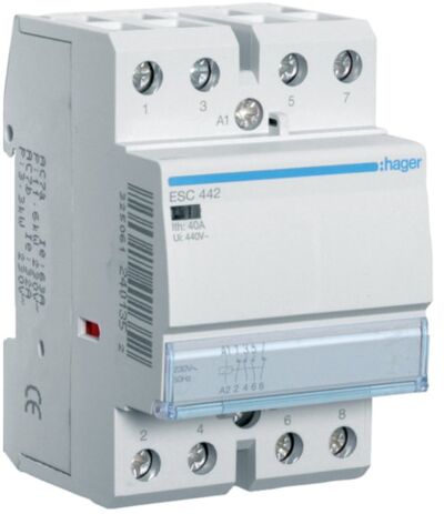 Купити Контактор 40A 4 полюси 2НО+2НЗ [Uc] 230В [Ue] 400 V AC 3-модульний Hager з наявності чи під замовлення
